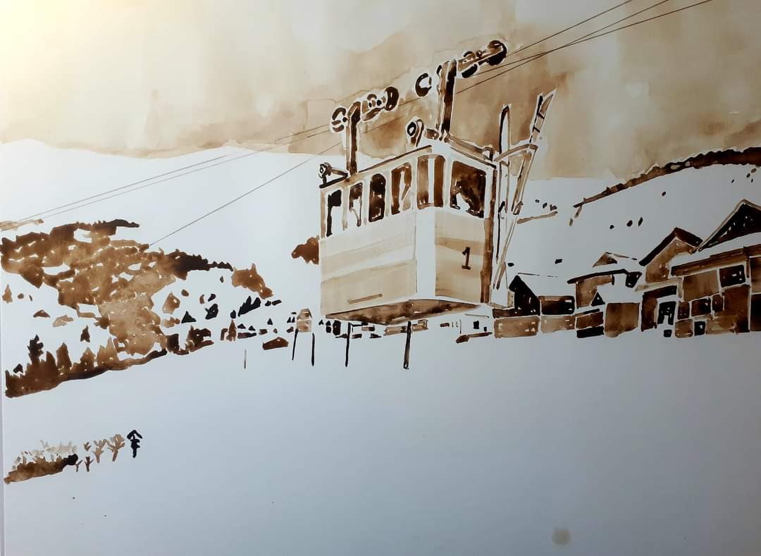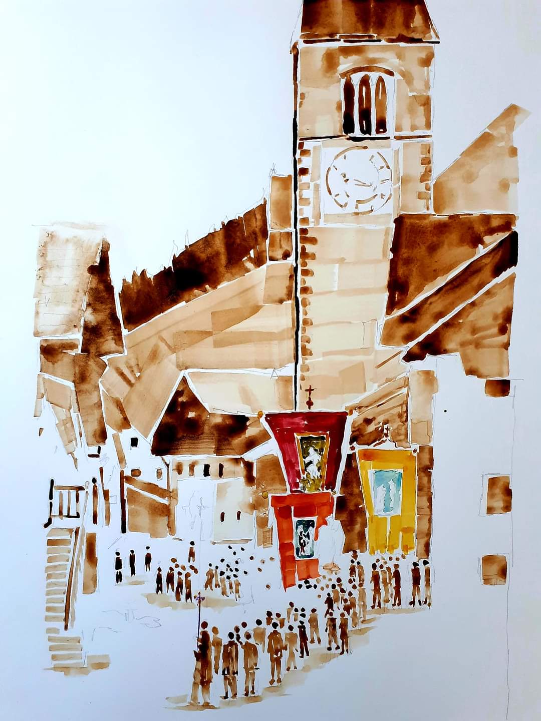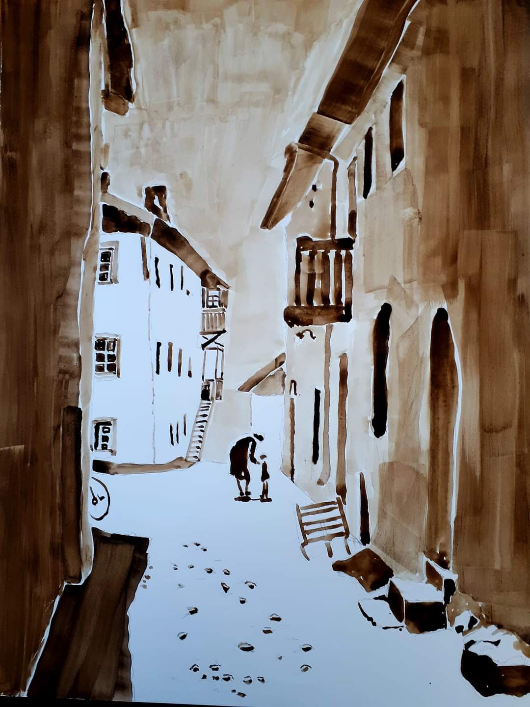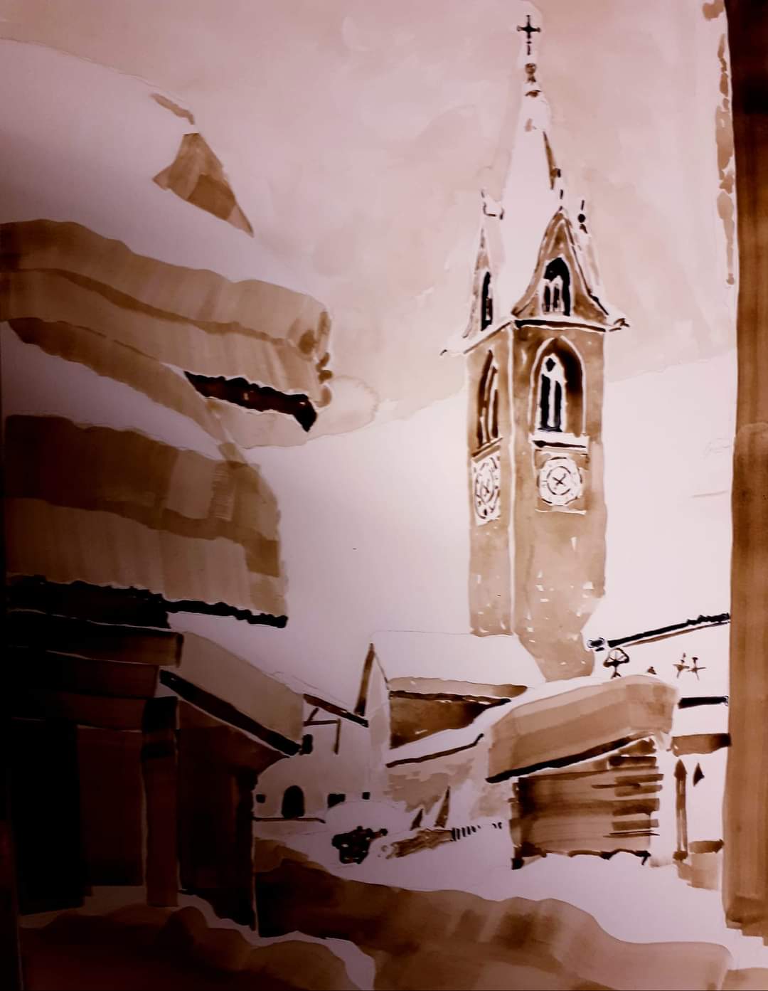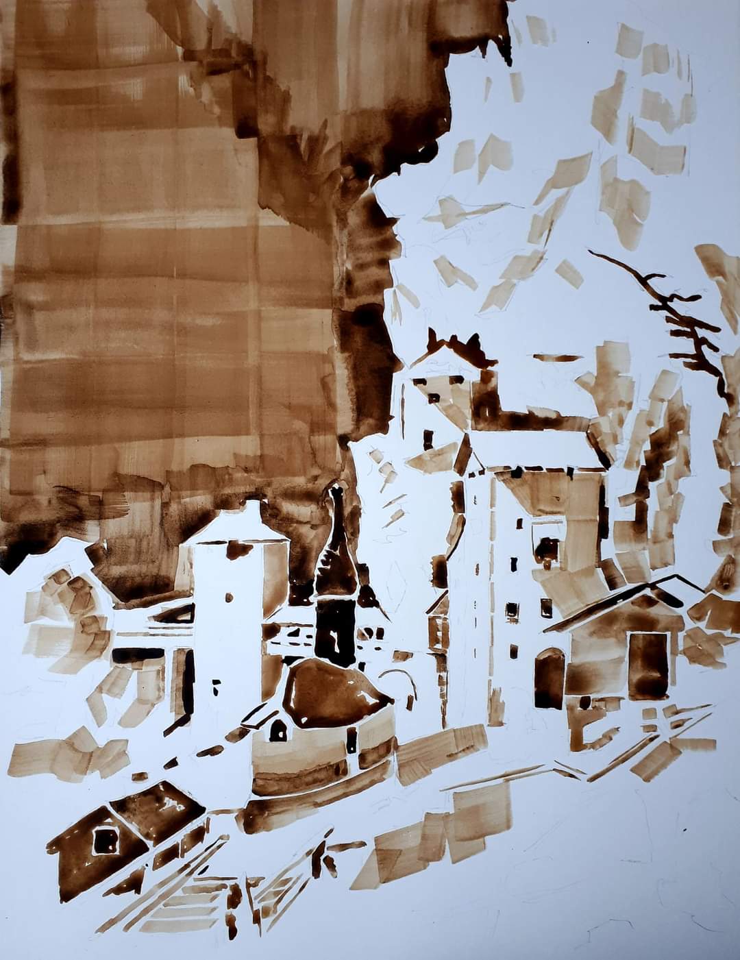 Dorfeinfahrt von Fliess im Jahre 1977 | 60×50cm