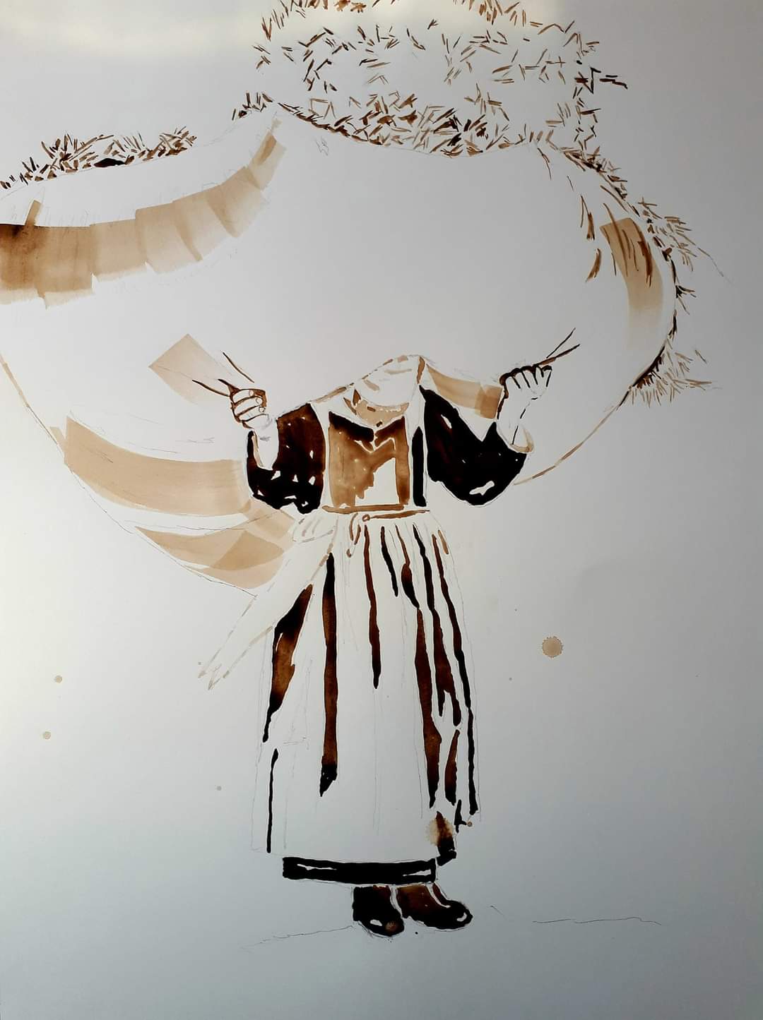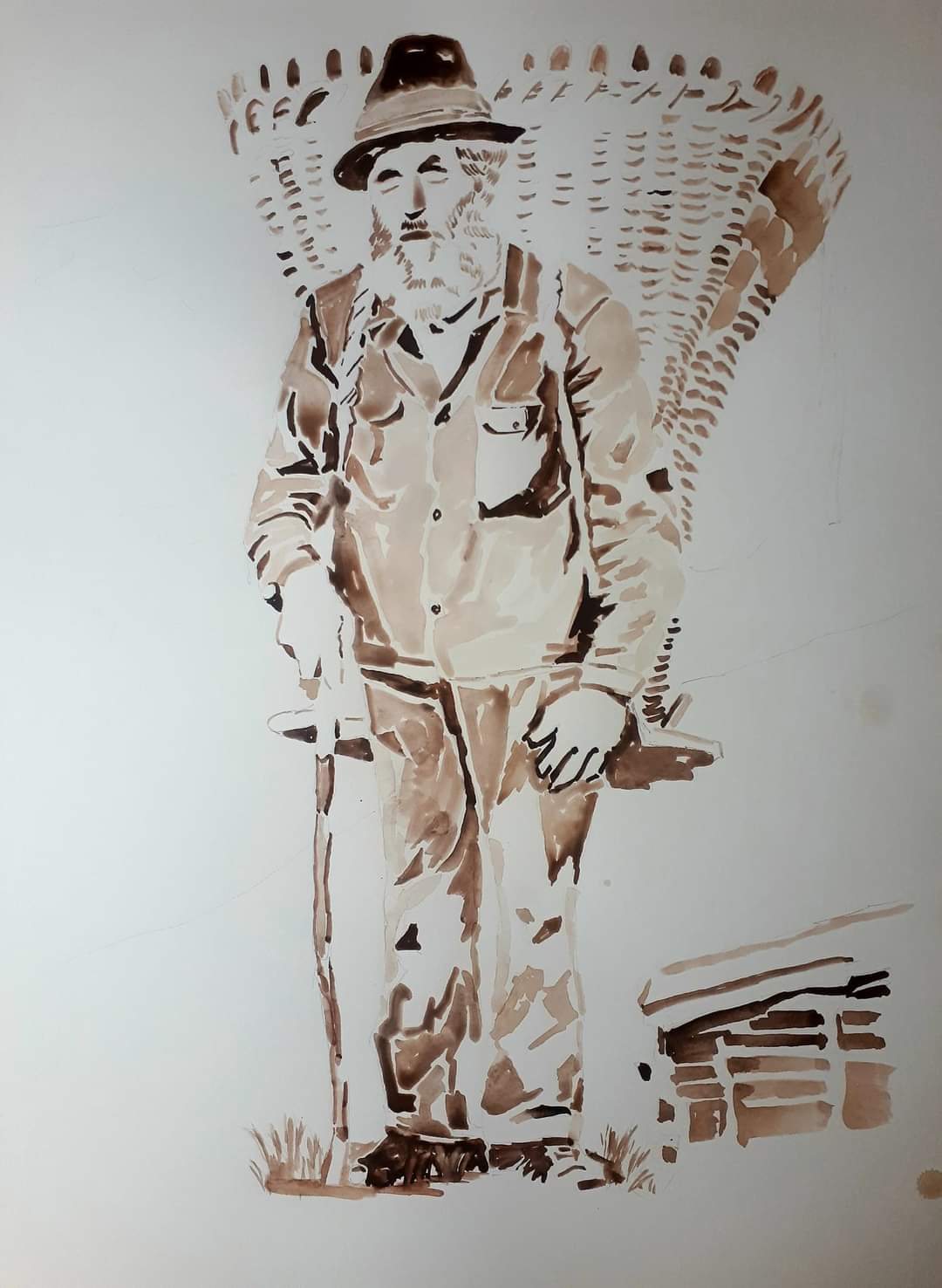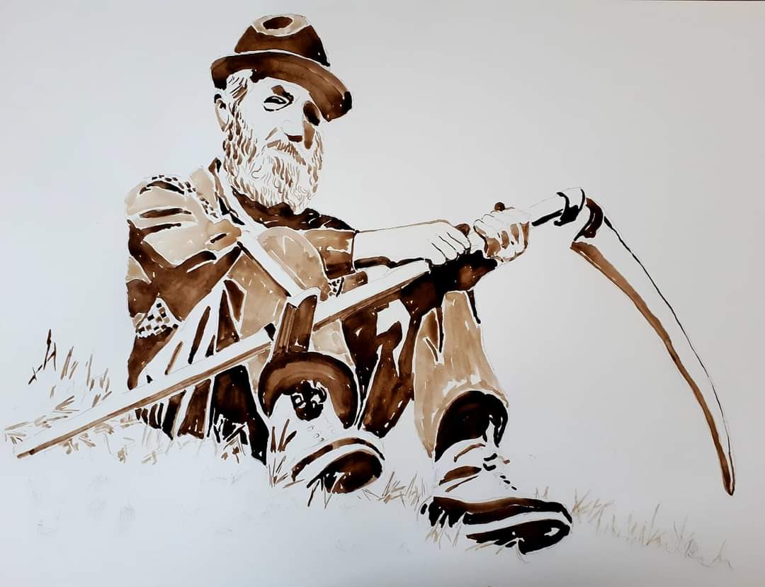 Klosterfrau bei der Heuarbeit | 60×40cm