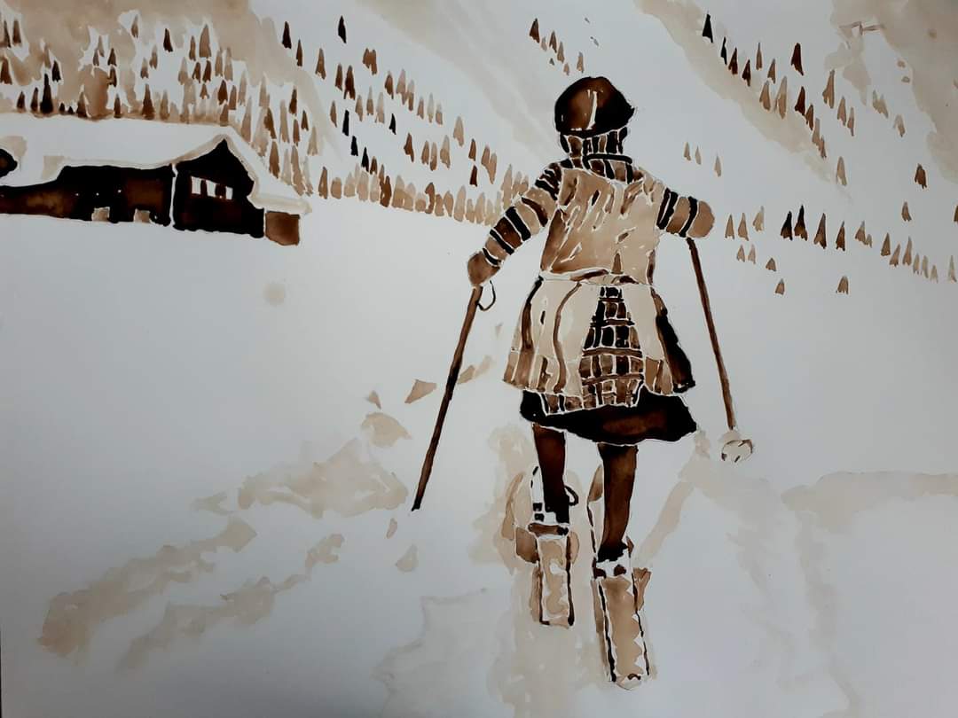 Alte Ansicht von Serfaus im Winter! | 60×40cm